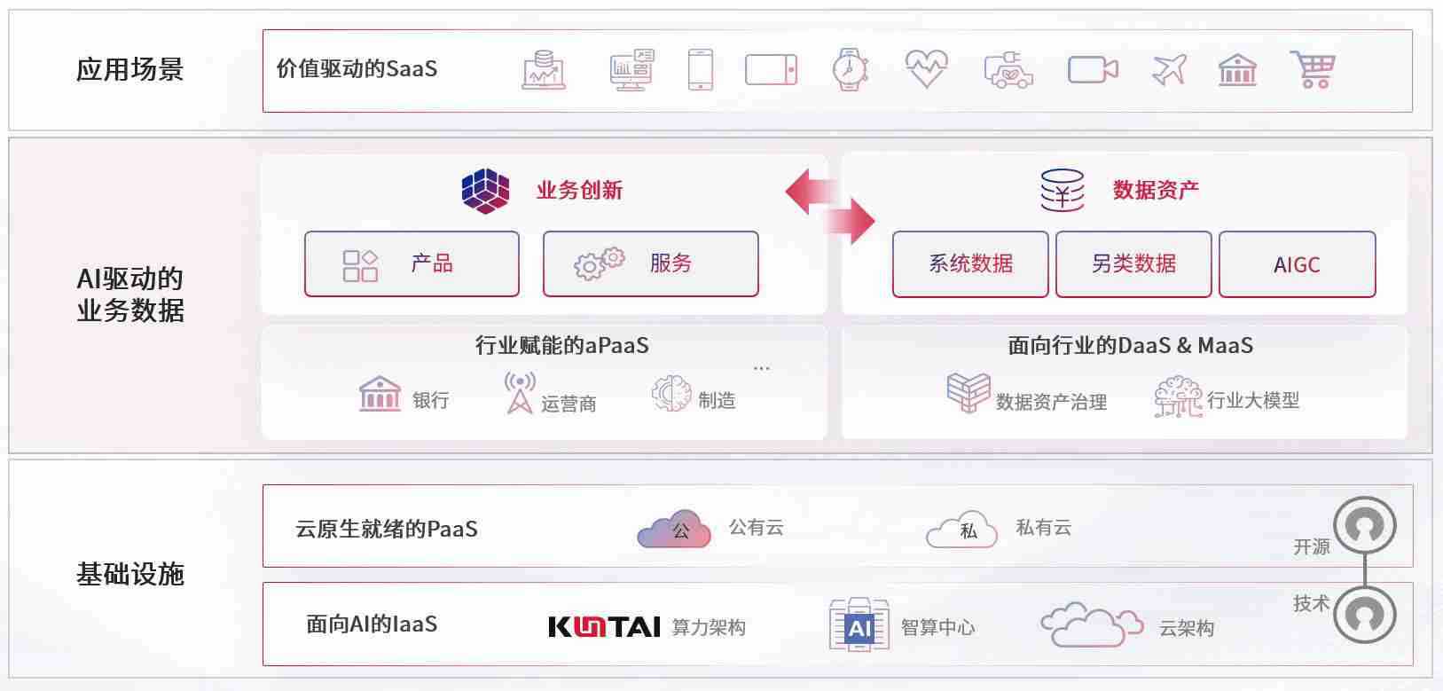 数字时代,,,围绕企业数字化转型的关键要素,,尊龙z6数码开创性的提出数云融合战略和技术体系框架,,,着力在云原生、、、数字原生、、、AI原生和信创产业上架构产品和服务能力,,,,为处在不同数字化转型阶段的快消零售、、、汽车、、金融、、、医疗、、、政企、、、、教育、、、运营商等行业客户提供泛在的敏捷IT能力和融合的数据驱动能力,,构建跨界融合创新的数字业务场景和新业务模式,,,,助力企业级客户建立面向未来的核心能力和竞争优势,,全面推动社会的数字化、、、智能化转型升级。。。
