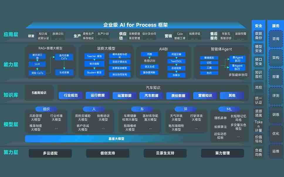 端到端的一站式AI工作空间深度融合了从企业战略规划到日常经营的全流程业务板块,,,定向解决车企内部领域多、、、部门多、、链条长、、场景碎片化等难题,,支持车企快速构建以AI为核心的生产力写作体系,,,,实现任务执行与AI能力的无缝集成与交互